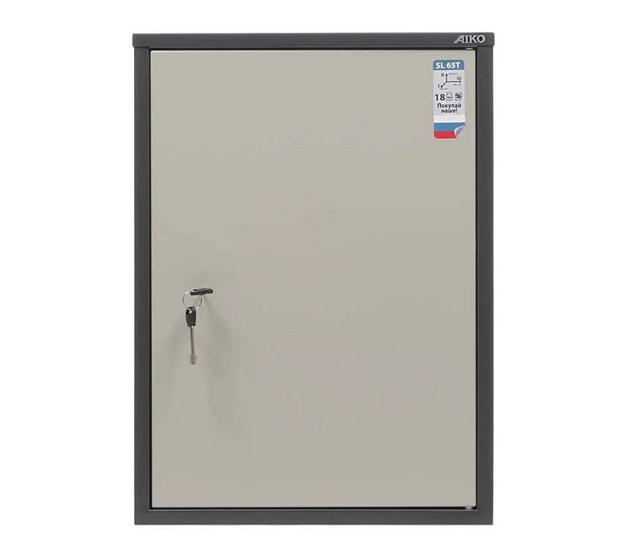 - Шкаф Aiko SL-65Т – это прочное сварное изделие из стальных листов толщиной 1.2 мм. На дверь устанавливается трёхригельный ключевой замок «Практик» сувальдного типа.
